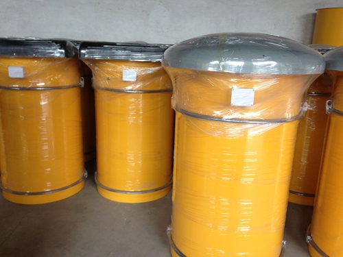 倉頂除塵器的濾塵是通過濾芯進(jìn)行的,濾濾芯材料玻纖,當(dāng)含塵空氣通過時(shí),使用固相與氣相分離開來,玻纖的濾芯是一種多孔性的濾塵材料,當(dāng)氣流通過時(shí),由于震動(dòng)作用、使氣流中的微粒吸附在濾芯上或沉降下來,凈化后的空氣即可排出,為了**附著和沉入濾芯的灰塵,在每班通風(fēng)機(jī)停止運(yùn)行時(shí)(每隔約2-4小時(shí))順序振動(dòng)除塵器,每次振動(dòng)5下左右。